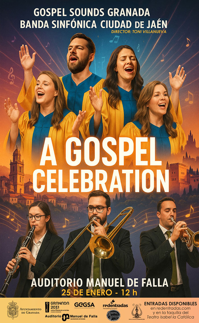 "A Gospel Celebration" es un espectáculo musical único que une la fuerza y la emoción del Coro Gospel Sounds Granada con la majestuosidad de la Banda Sinfónica Ciudad de Jaén.